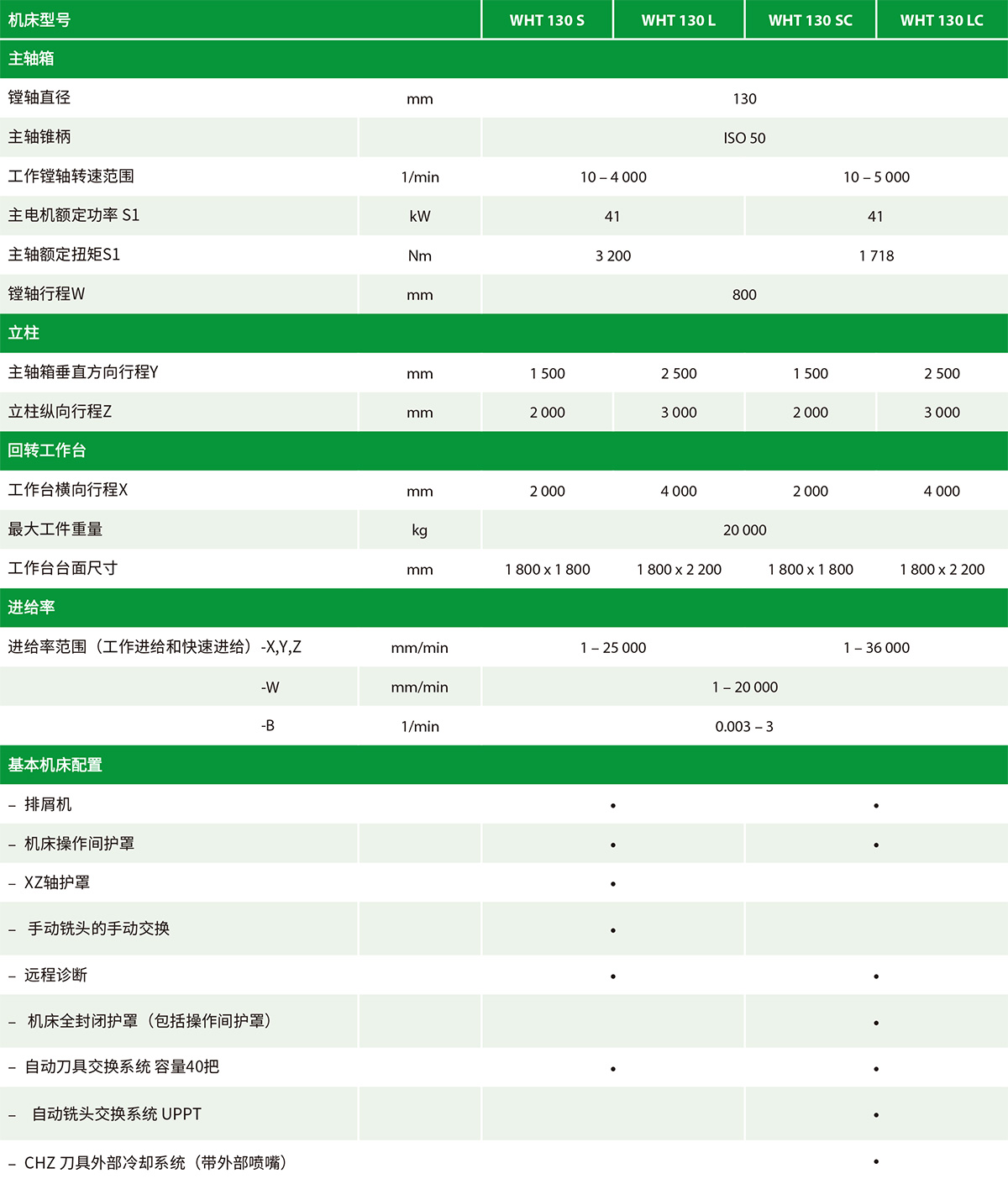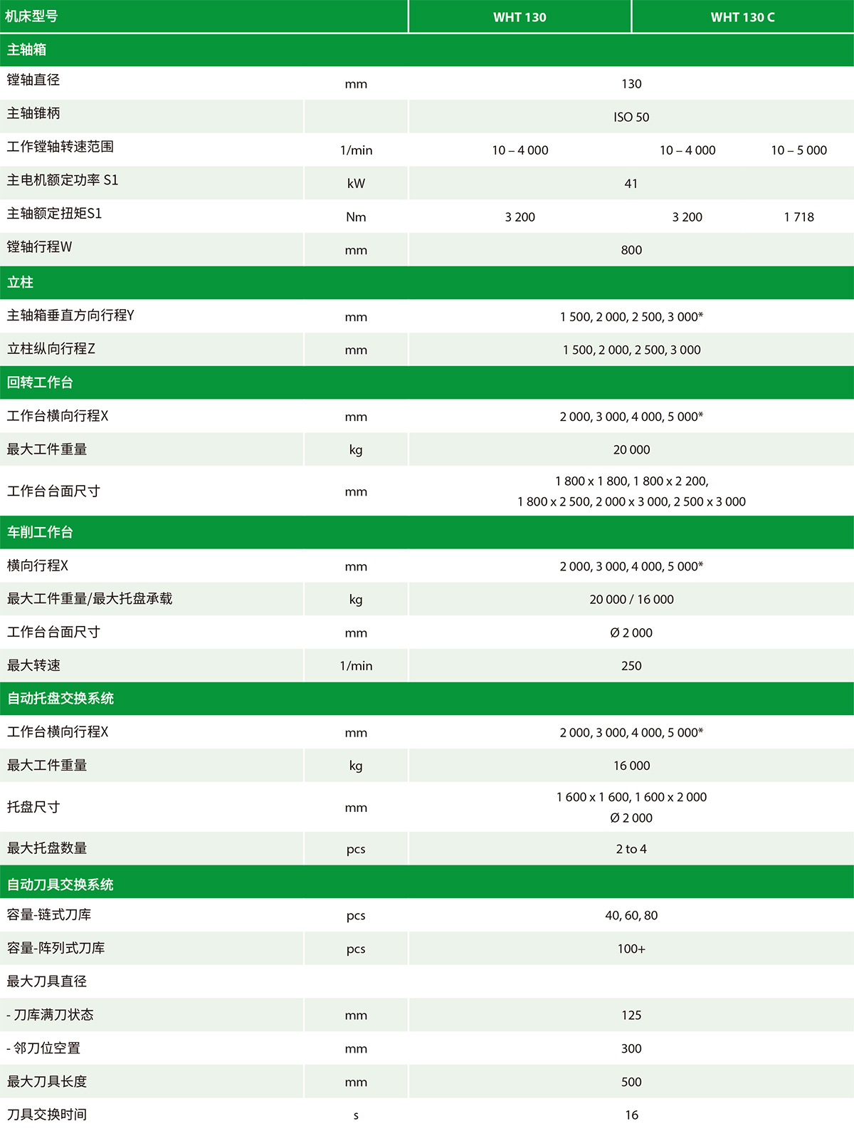 WHT 130 : 25 000 mm/min 和36 000 mm/min |