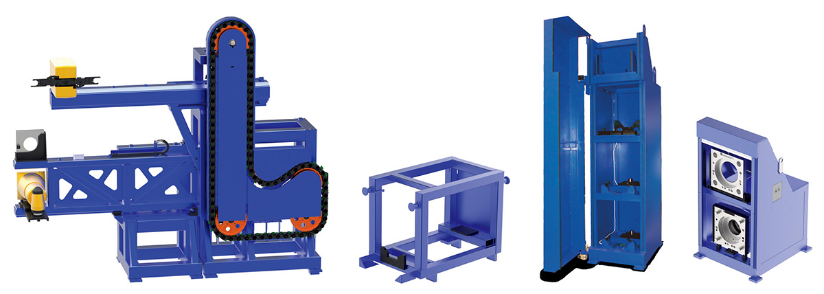 頭庫架位于工件同一側,通過立柱移動方式去拾取銑頭。(主要針對落地式鏜銑床)