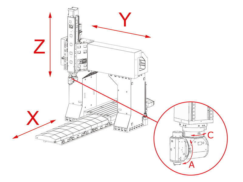 • 機床配置五軸連續(xù)控制(X、Y、Z、C、A)